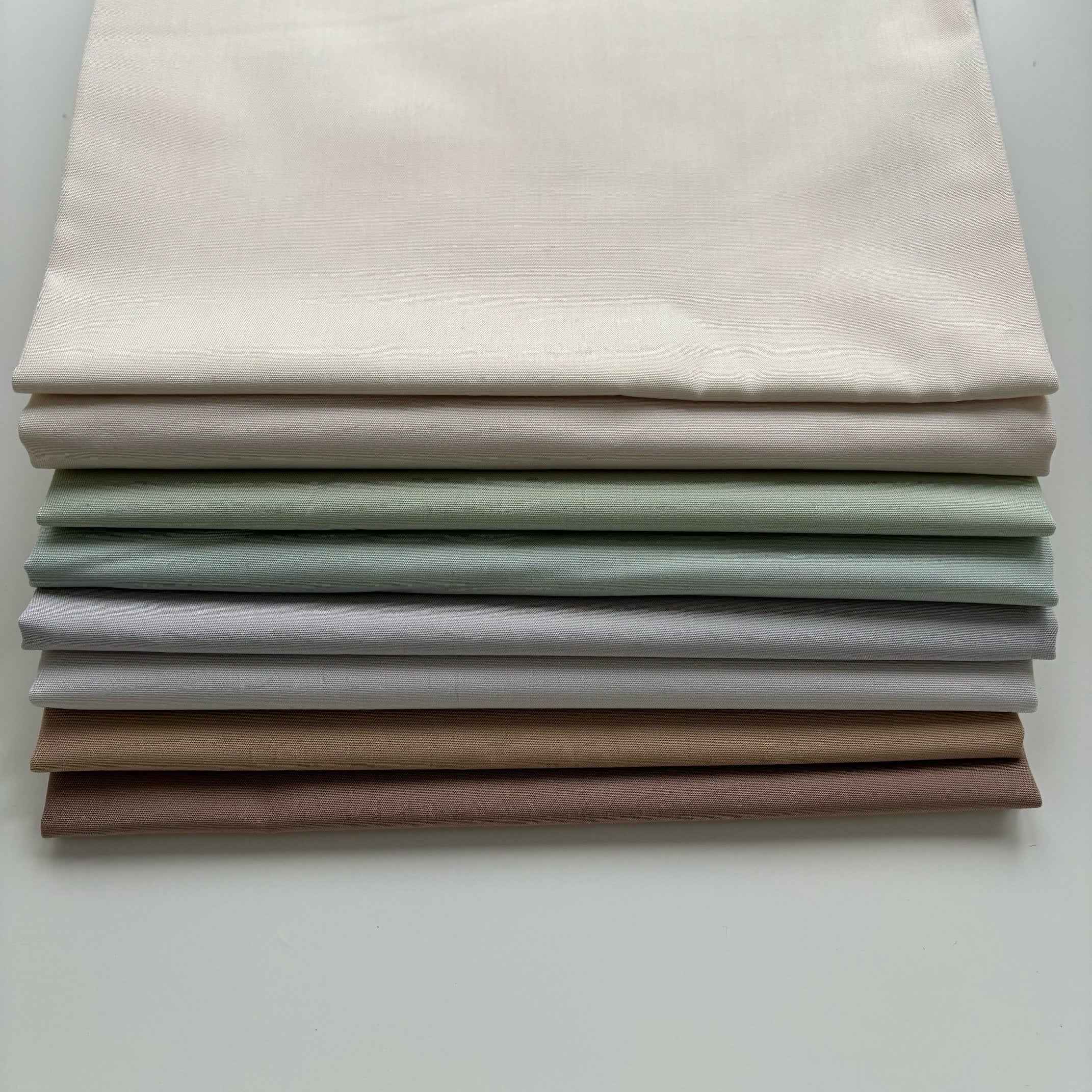 Bundle of scrappy pieces of AGF PURE Solids measuring between 1/4 yard and 1/2 yard. Approximately 3 yards by weight.