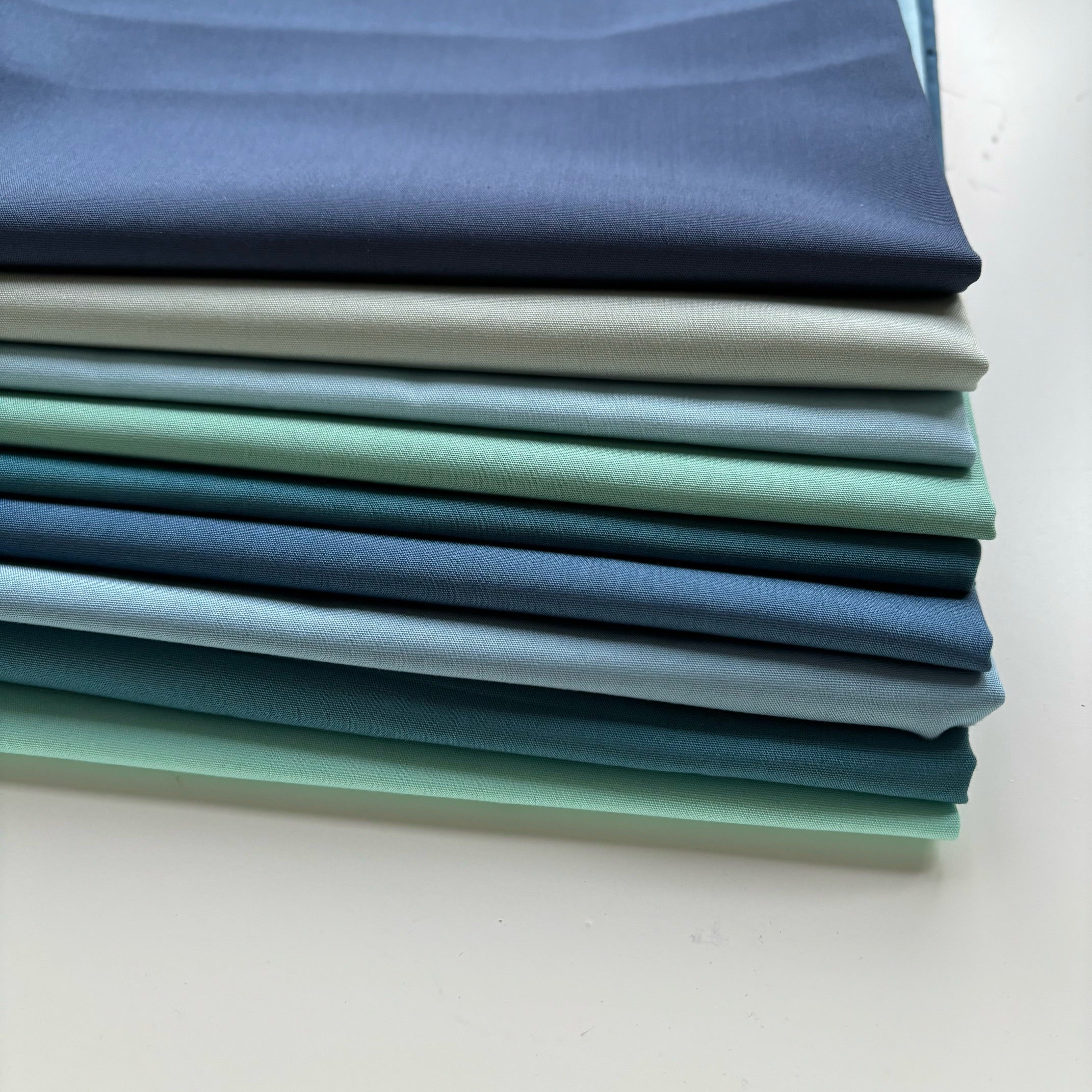Bundle of scrappy pieces of AGF PURE Solids measuring between 1/4 yard and 1/2 yard. Approximately 3 yards by weight.
