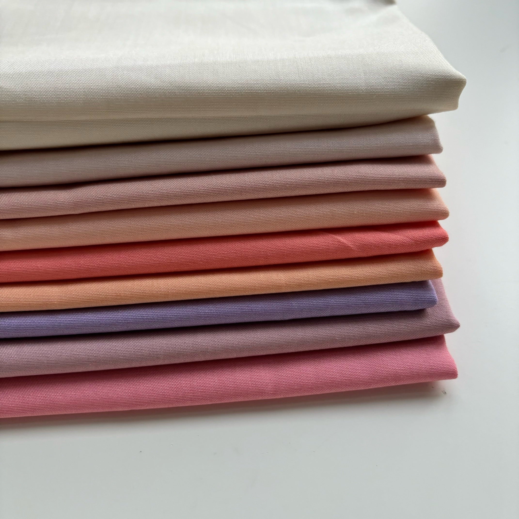 Bundle of scrappy pieces of AGF PURE Solids measuring between 1/4 yard and 1/2 yard. Approximately 3 yards by weight.