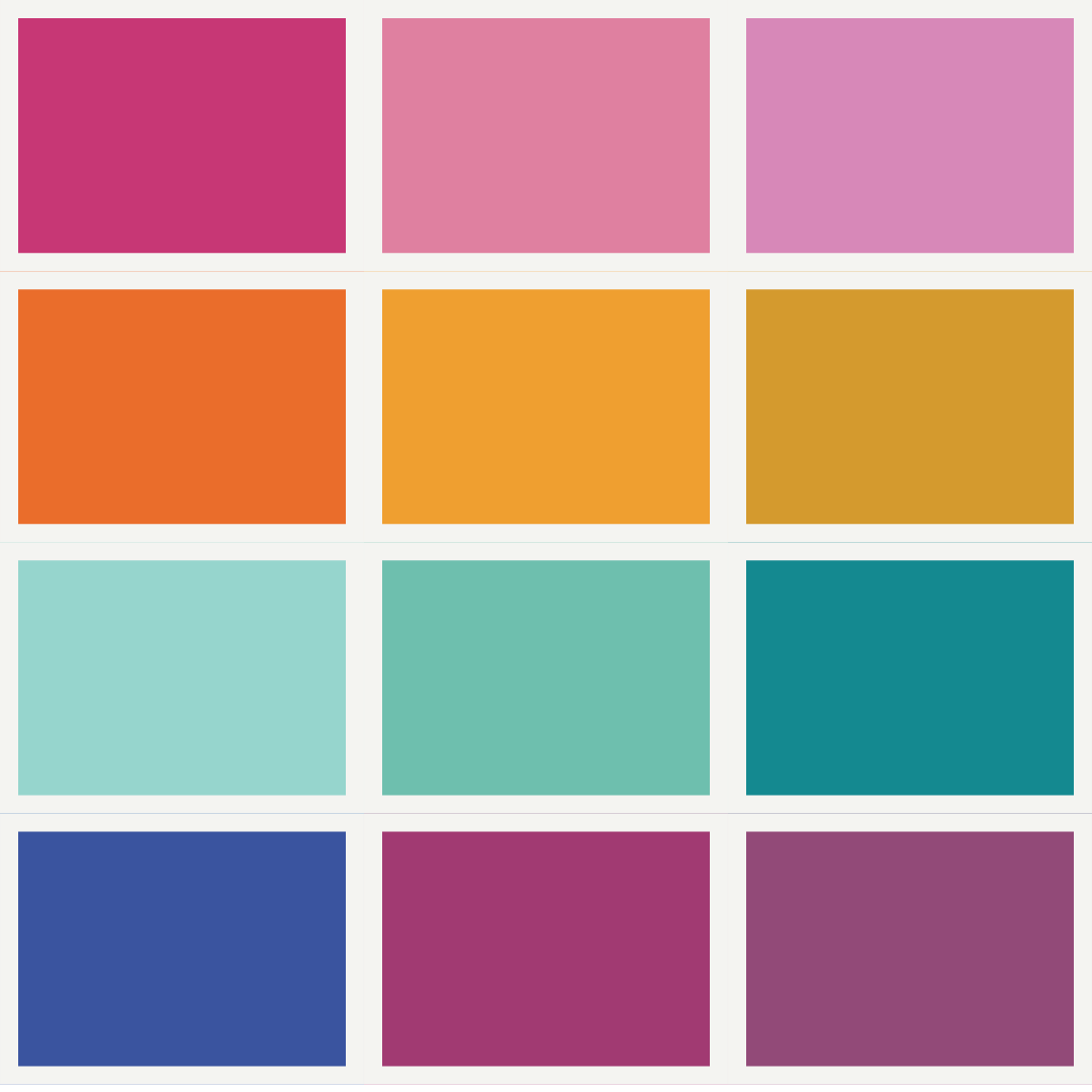 Curated fat quarter bundle from containing 12 colors of Art Gallery Fabrics PURE Solids.